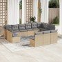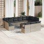 Set de sofás de jardín y cojines 13 pzas ratán sintético negro