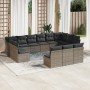 Set de sofás de jardín 14 pzas con cojines ratán sintético gris