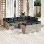 Set sofás de jardín con cojines 13 piezas ratán sintético gris