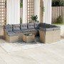 Set de sofás de jardín 11 pzas y cojines ratán sintético gris