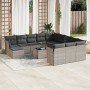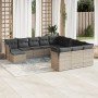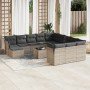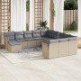 Set sofás de jardín con cojines 13 pzas ratán sintético beige