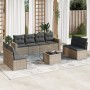Set de sofás de jardín 9 pzas y cojines ratán sintético marrón