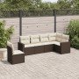 Set de sofás de jardín 7 piezas con cojines ratán PE gris