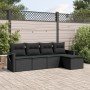 Set comedor de jardín 5 piezas y cojines ratán sintético marrón