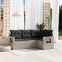 Set comedor de jardín 5 piezas y cojines ratán sintético marrón