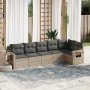 Set de comedor de jardín 7 pzas y cojines ratán sintético negro