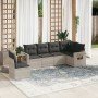 Set sofás de jardín 7 piezas y cojines ratán sintético beige