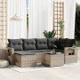 Juego de sofás jardín con cojines 6 pzas ratán sintético beige