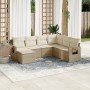 Set de sofás de jardín 7 pzas con cojines ratán PE gris claro