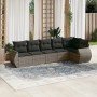 Set de comedor de jardín 7 pzas y cojines ratán sintético negro