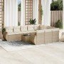 Set de sofás de jardín 11 pzas y cojines ratán sintético gris