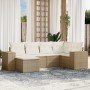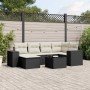 Set de sofás de jardín 6 piezas y cojines ratán sintético negro