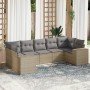 Set de comedor de jardín 7 pzas y cojines ratán sintético negro
