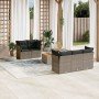 Set de sofás de jardín 6 piezas y cojines ratán sintético negro