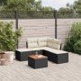 Set de sofás de jardín 6 piezas y cojines ratán sintético negro