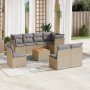 Juego de sofás jardín con cojines beige mezcla 9 pzas ratán PE