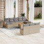 Set de sofás de jardín 11pzas con cojines ratán sintético beige