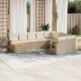 Este conjunto de sofás de jardín es el complemento perfecto para el jardín, terraza o patio, ya que proporciona un espacio confortable y acogedor para charlar con familiares y amigos o simplemente relajarte y disfrutar del aire libre. Material duradero: El ratán PE, también conocido como ratán sintético, es un material sintético resistente y de bajo mantenimiento que se parece al ratán natural. Es ligero, fácil de limpiar y se usa comúnmente para muebles de exterior debido a su durabilidad y propiedades resistentes a la intemperie.Función de almacenaje con bolsa impermeable: Cada asiento de jardín cuenta con espacio de almacenamiento debajo del asiento, completo con una bolsa resistente al agua para guardar cojines, juguetes y otros artículos. Las bolsas interiores tienen una cubierta superior y pueden fijarse firmemente a los asientos con cierres adhesivos para mayor estabilidad.Superficie estable y fácil de limpiar: Esta mesa de jardín tiene una superficie de madera de acacia que es resistente, duradero y fácil de limpiar con un paño húmedo.Práctica mesa auxiliar: Este mueble de exterior cuenta con una mesa auxiliar plegable con un resorte de gas en los reposabrazos, lo que proporciona un lugar conveniente para mantener tus elementos esenciales al alcance de la mano.Diseño modular: Este conjunto de muebles de exterior tiene un diseño modular, por lo que es completamente flexible y fácil de mover, para que puedas crear una disposición de muebles de exterior personalizada. Información útil:Para asegurarte de que tus muebles de exterior se mantengan hermosos, recomendamos protegerlos con una funda impermeable.
