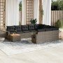 Set de sofás de jardín 11 pzas y cojines ratán sintético negro