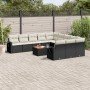 Set de sofás de jardín 12 piezas cojines ratán sintético negro