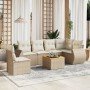 Set sofás de jardín 7 piezas y cojines ratán sintético beige