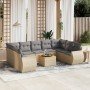 Juego de sofás jardín con cojines beige 10 pzas ratán sintético