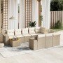 Set de sofás de jardín 11pzas con cojines ratán sintético beige