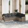 Set de sofás de jardín 6 piezas y cojines ratán sintético negro