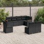 Set de sofás de jardín 8 piezas y cojines ratán sintético negro