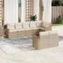 Set de sofás de jardín 9 pzas con cojines ratán sintético beige