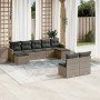 Set de sofás de jardín 9 pzas con cojines ratán sintético beige