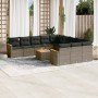 Set de sofás de jardín 11 pzas y cojines ratán sintético negro