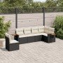 Set de sofás de jardín 6 piezas y cojines ratán sintético negro