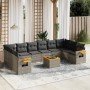 Set de sofás de jardín 11pzas con cojines ratán sintético beige