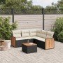 Set de sofás de jardín 6 piezas y cojines ratán sintético negro