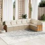Set de comedor de jardín 7 pzas y cojines ratán sintético negro