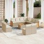 Set de sofás de jardín 11pzas con cojines ratán sintético beige