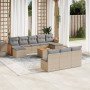 Set de sofás de jardín 10 pzas cojines ratán sintético negro