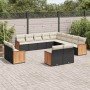 Set sofás de jardín 14 pzas con cojines ratán sintético negro