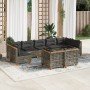 Set de sofás de jardín 8 piezas y cojines ratán sintético negro
