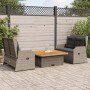 Este conjunto de sofás de jardín es el complemento perfecto para el jardín, terraza o patio, ya que proporciona un espacio confortable y acogedor para charlar con familiares y amigos o simplemente relajarte y disfrutar del aire libre. Material duradero: El ratán sintético, también conocido como ratán sintético, es un material sintético resistente y de bajo mantenimiento que se parece al ratán natural. Es ligero, fácil de limpiar y se usa comúnmente para muebles de exterior debido a su durabilidad y propiedades resistentes a la intemperie.Respaldo regulable: Puedes ajustar el respaldo a cualquier posición tirando del asa y devolverlo rápidamente a su posición original.Funda desenfundable y lavable: Estos cojines de asiento cuentan con fundas desenfundables para facilitar el lavado y mantenimiento.Experiencia de asiento cómoda: Estos muebles de exterior, completos con cojines acolchados gruesos, ofrecen una experiencia de asiento cómoda.Superficie estable y fácil de limpiar: Esta mesa de jardín tiene una superficie de madera de acacia que es resistente, duradero y fácil de limpiar con un paño húmedo.Estructura robusta y estable: La estructura de acero con recubrimiento en polvo es fuerte, estable, duradero y resistente a la corrosión y a las inclemencias del tiempo, lo que garantiza un rendimiento duradero. Información útil:Para asegurarte de que tus muebles de exterior se mantengan hermosos, recomendamos protegerlos con una funda impermeable.