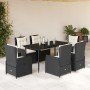 Set comedor de jardín 3 pzas con cojines ratán sintético negro