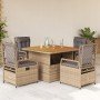 Set comedor de jardín 5 pzas con cojines ratán sintético beige