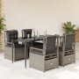 Set comedor de jardín 3 piezas con cojines ratán sintético gris