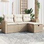 Juego de sofás jardín con cojines beige mezcla 4 pzas ratán PE
