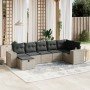 Set de sofás de jardín 7 pzas con cojines ratán PE gris claro