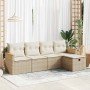 Juego de sofás jardín con cojines beige mezcla 6 pzas ratán PE