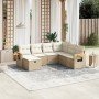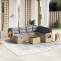 Set de sofás de jardín 7 piezas con cojines ratán PE gris