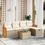 Este conjunto de sofás de jardín es el complemento perfecto para el jardín, terraza o patio, ya que proporciona un espacio confortable y acogedor para charlar con familiares y amigos o simplemente relajarte y disfrutar del aire libre. Material duradero: El ratán PE, también conocido como ratán sintético, es un material sintético resistente y de bajo mantenimiento que se parece al ratán natural. Es ligero, fácil de limpiar y se usa comúnmente para muebles de exterior debido a su durabilidad y propiedades resistentes a la intemperie.Experiencia de asiento cómoda: Estos muebles de exterior, completos con cojines acolchados gruesos, ofrecen una experiencia de asiento cómoda.Funda desenfundable y lavable: Estos cojines de asiento cuentan con fundas desenfundables para facilitar el lavado y mantenimiento.Estructura robusta y estable: La estructura de acero con recubrimiento en polvo garantiza que el mueble de jardín sea resistente y estable para usarlo a diario al aire libre.Diseño modular: Este conjunto de muebles de exterior tiene un diseño modular, por lo que es completamente flexible y fácil de mover, para que puedas crear una disposición de muebles de exterior personalizada. Información útil:Para asegurarte de que tus muebles de exterior se mantengan hermosos, recomendamos protegerlos con una funda impermeable.