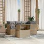 Set de muebles de jardín 5 pzas y cojines ratán sintético negro